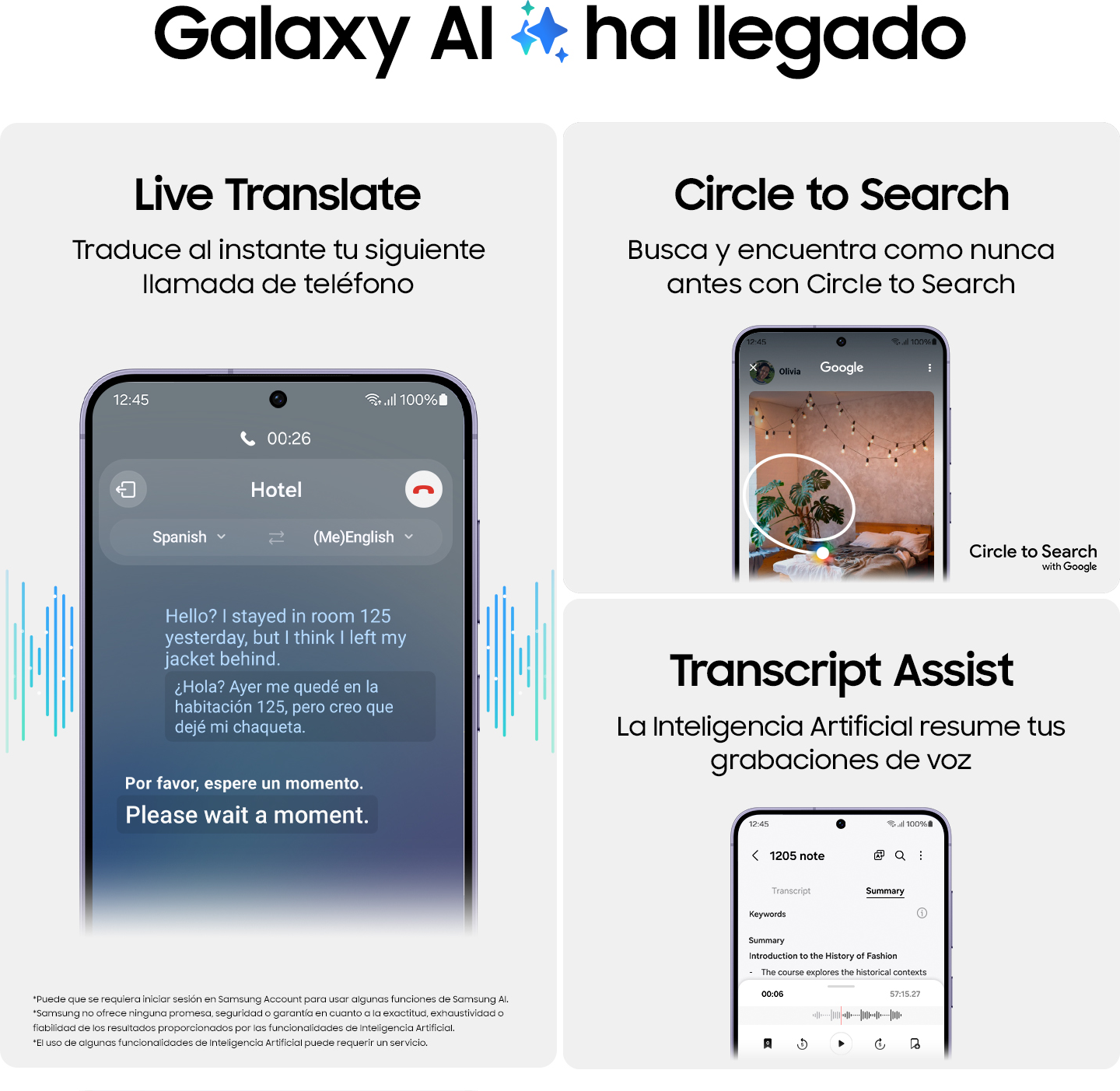 ¿Imaginas un dispositivo capaz de razonar, planificar y crear? Galaxy S24 Series no es un nuevo Smartphone más, es el primer AI Phone de Samsung. Galaxy AI ha llegado para cambiar la forma en como usamos nuestro teléfono. Navega y busca información sin esfuerzo, comunícate sin barreras de idioma o trabaja de forma más productiva e inteligente.